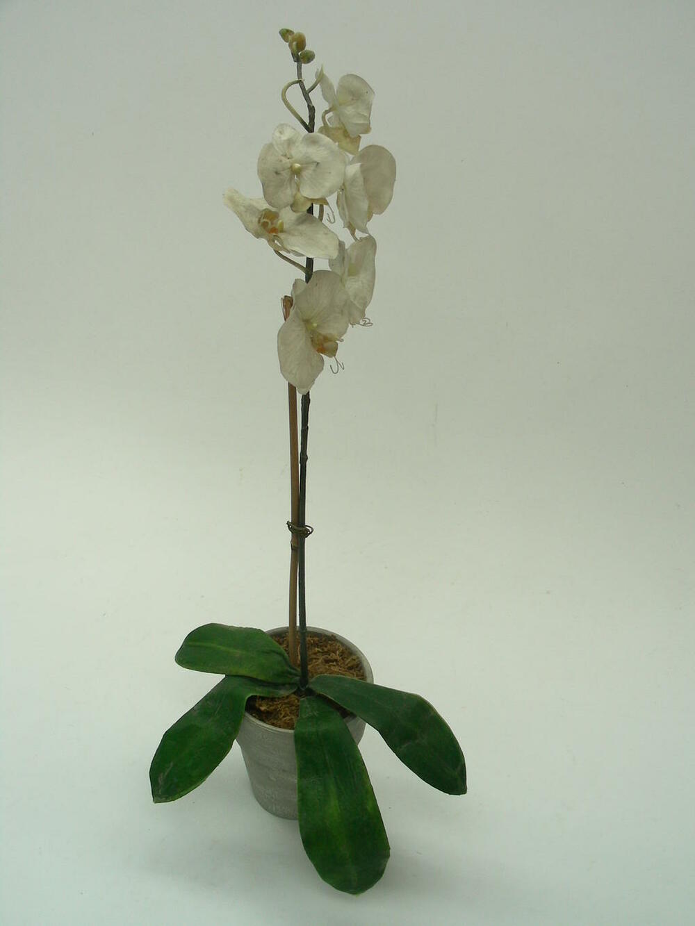 Pflanzenattrappe, Grünpflanze, weiße Orchidee, künstlich, Übertopf