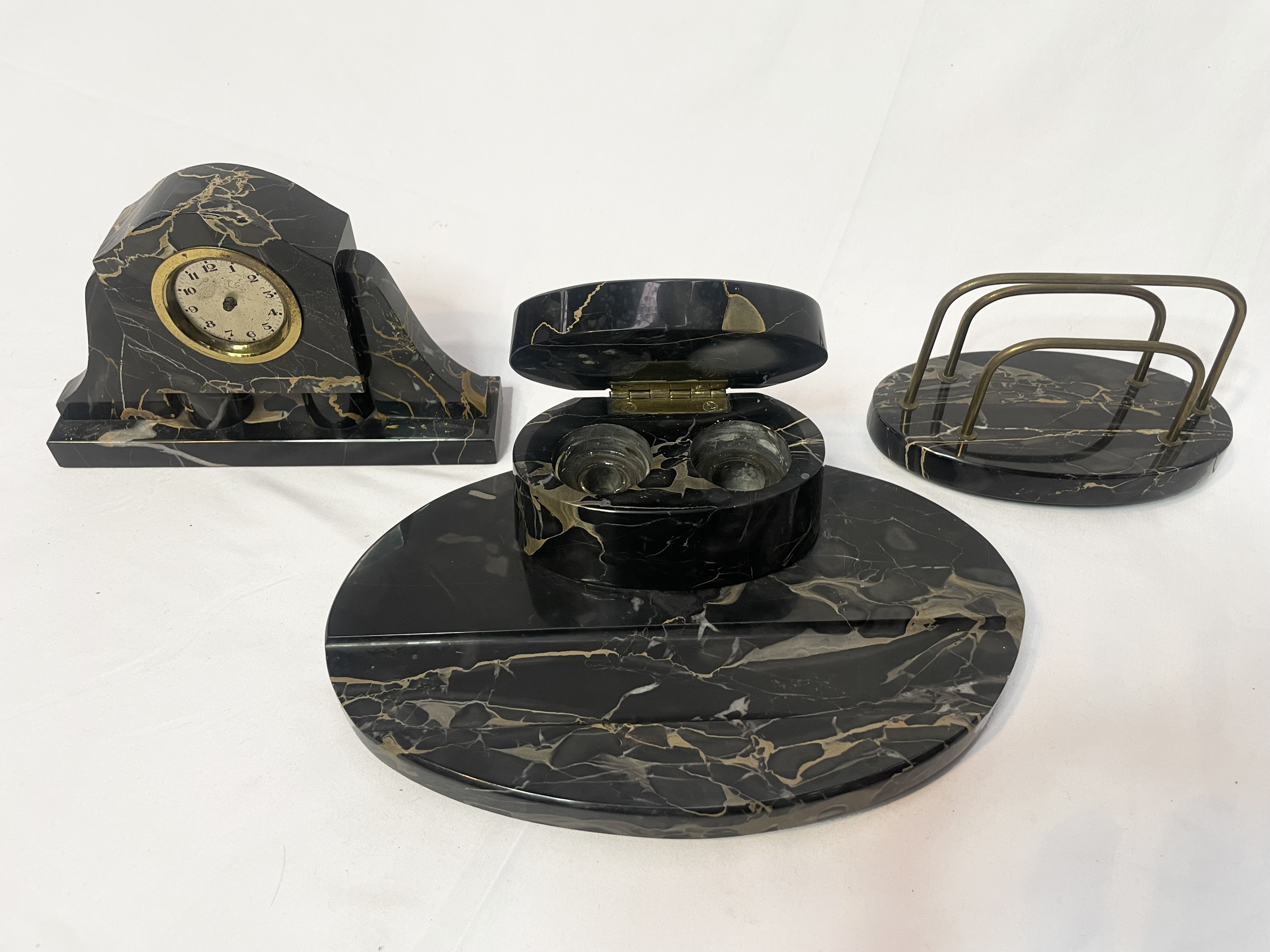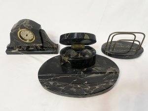Schreibtischset, 3-teilig, Marmor / Messing,