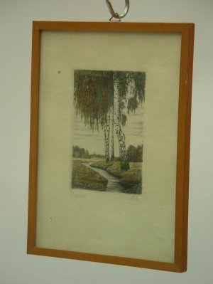 Gemälde, "Birken", Holzrahmen