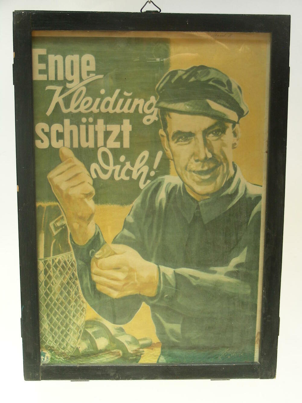 Bild, Holzrahmen, 60er - Jahre - Motiv: "Enge Kleidung schützt Dich!"