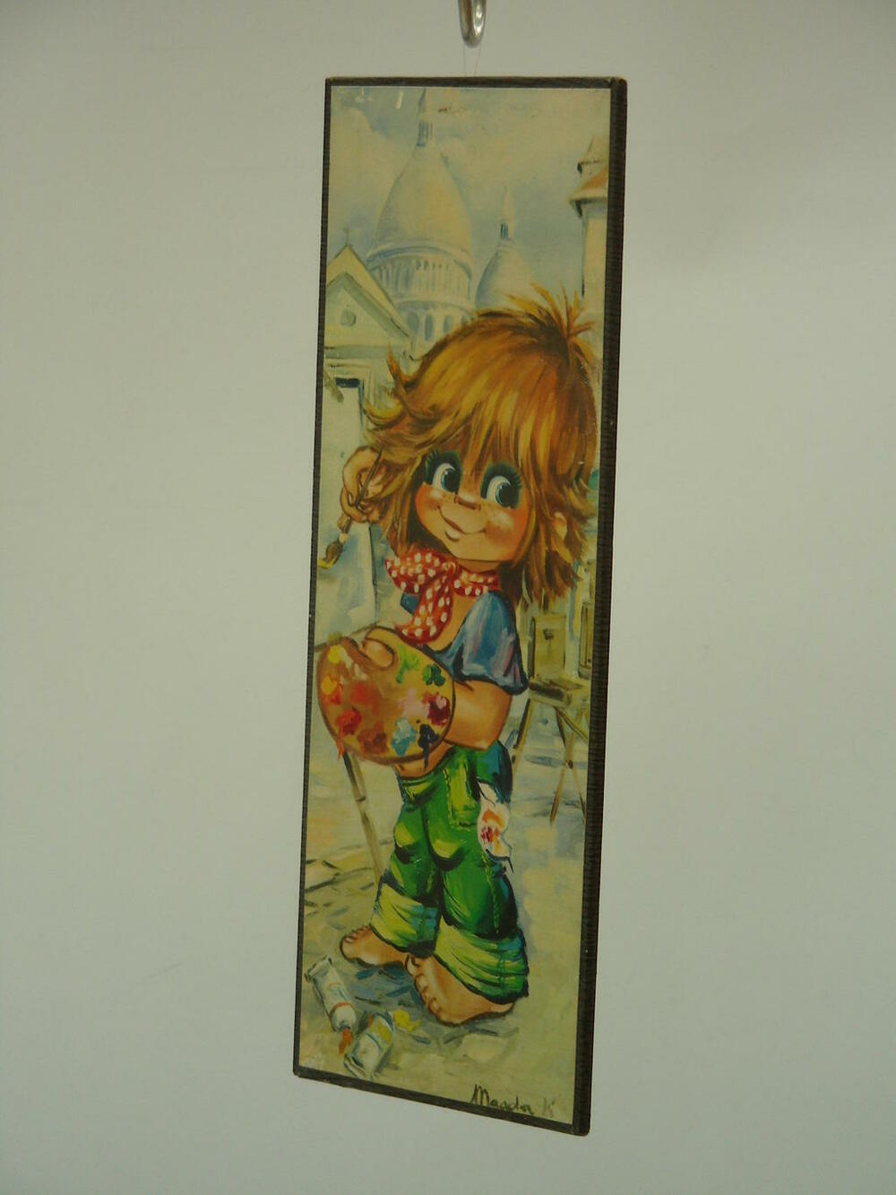 Bild, Kinderbild, "malendes Mädchen", aufgezogen auf Holz