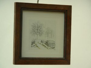 Bild, quadratisch, Winterlandschaft, Holzrahmen
