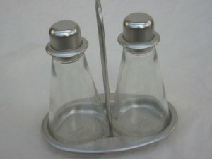 Essig, Öl, Portionierer, Flasche, in silbernem Halter, 5-teilig, Ikea