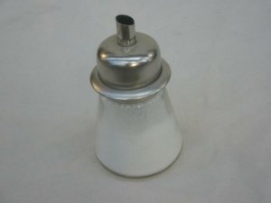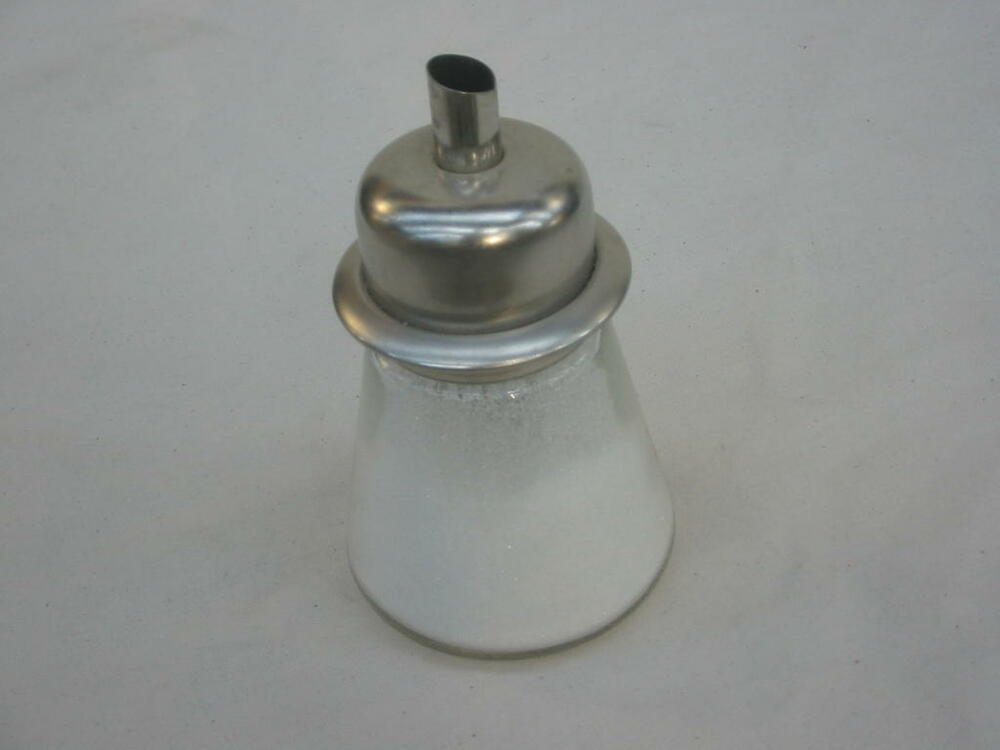 Zuckerstreuer, bauchige Form, silberner Deckel mit Portionier-Öffnung, Schraubverschluß, Ikea