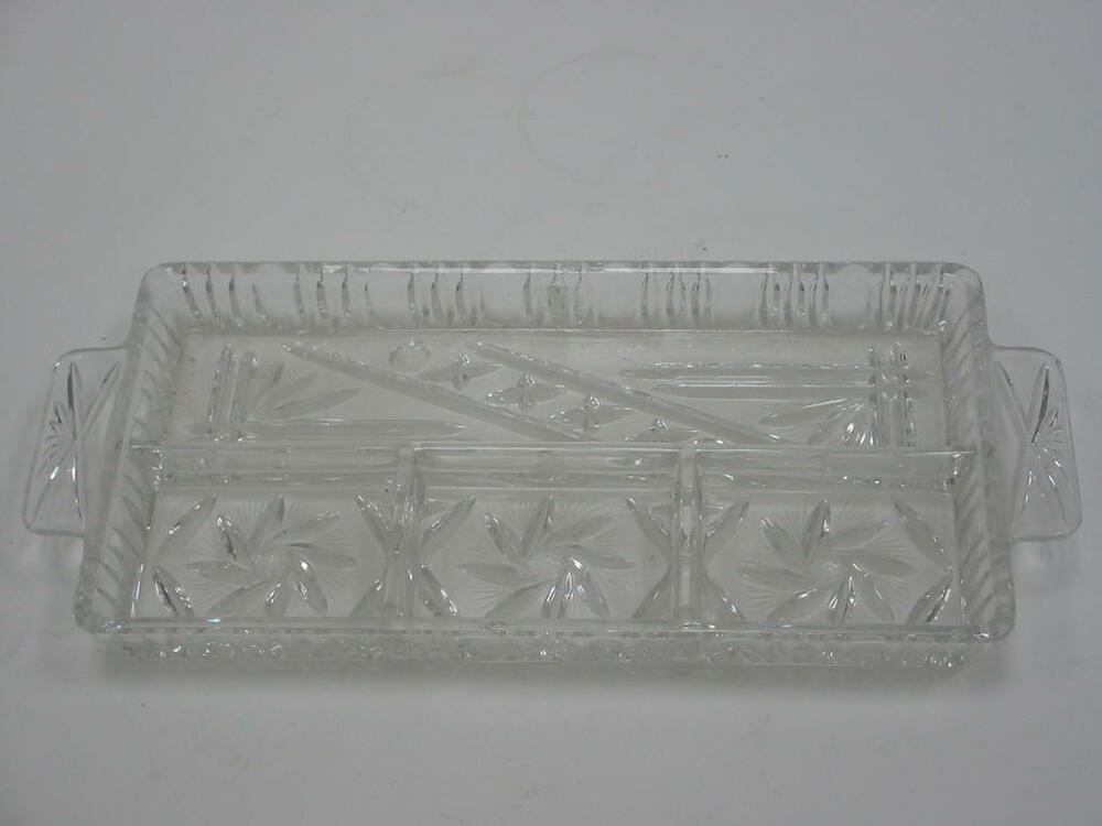 Schale, Schälchen, Snack-Schale, 4-fach Unterteilt, facettierte Unterseite, mit Griffen