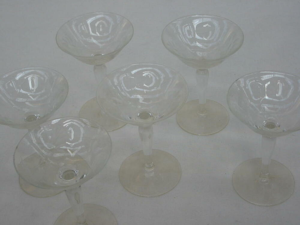 Glas, Schale, Likör, Stiel konisch, graviert: Motiv Blumen