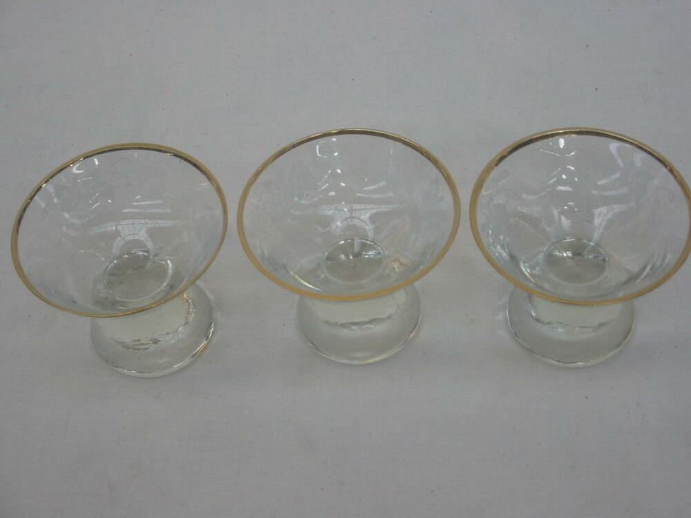 Glas, Likör, Schale, konischer Fuß, bedruckt, Motiv Trauben, Goldrand