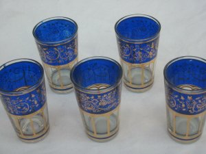 Glas, Tee, arabisch, Gold - Ornament, farbig bedruckt, blau