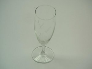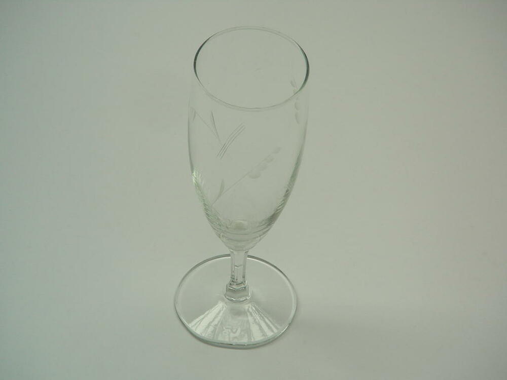 Glas, Sektglas, gravierte Ähre, facettierter Stiel