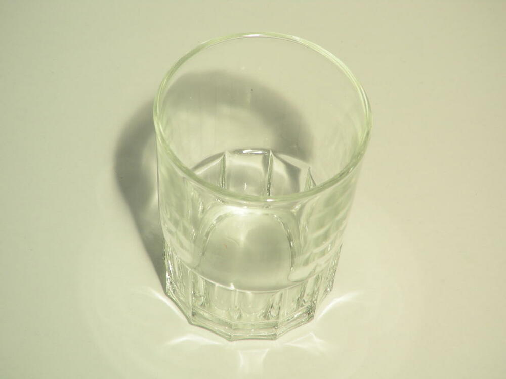 Glas, Saftglas, Wasserglas, klein, geriffelter Boden