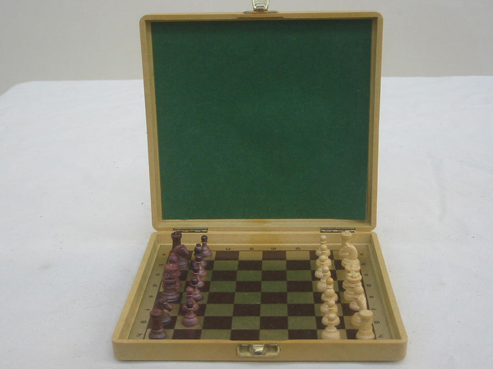 Spielzeug, Schach, Kunststofffiguren mit Magnet, 30-teilig (je ein Läufer fehlt), Reise-Schachspiel und Spielfigurenkasten