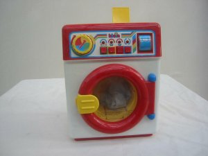 Spielzeug, Waschmaschine, mit Batterieantrieb, Zeitschaltuhr, Wasserschlauch,Türe öffenbar