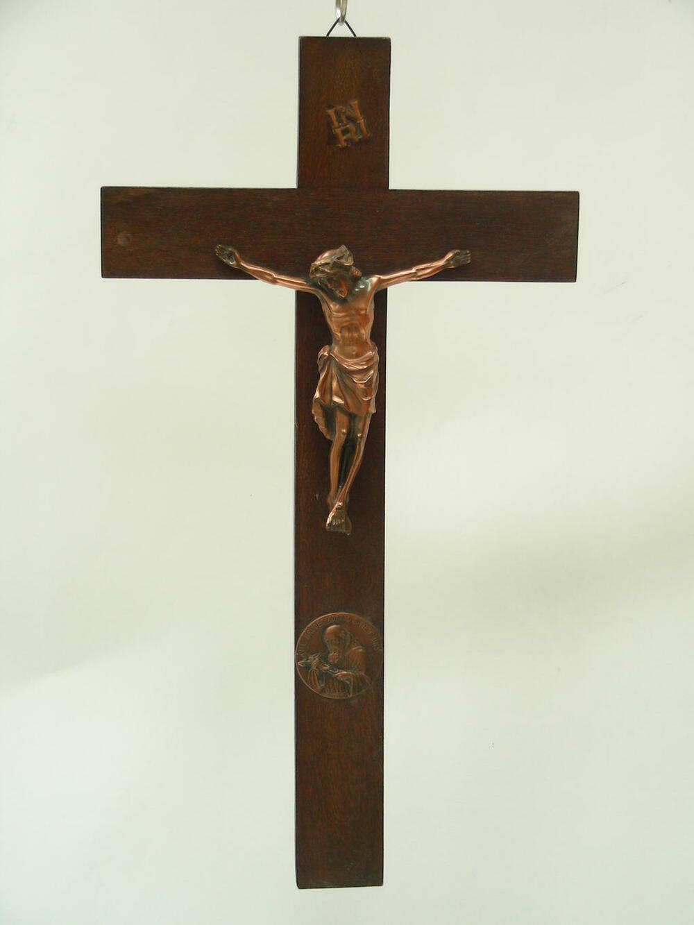 Kruzifix, Kreuz mit Jesus und Bruder Konrad - Plakette, Holz