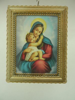 Bild, religiös, Maria mit Kind, Kunststoffrahmen, verziert,