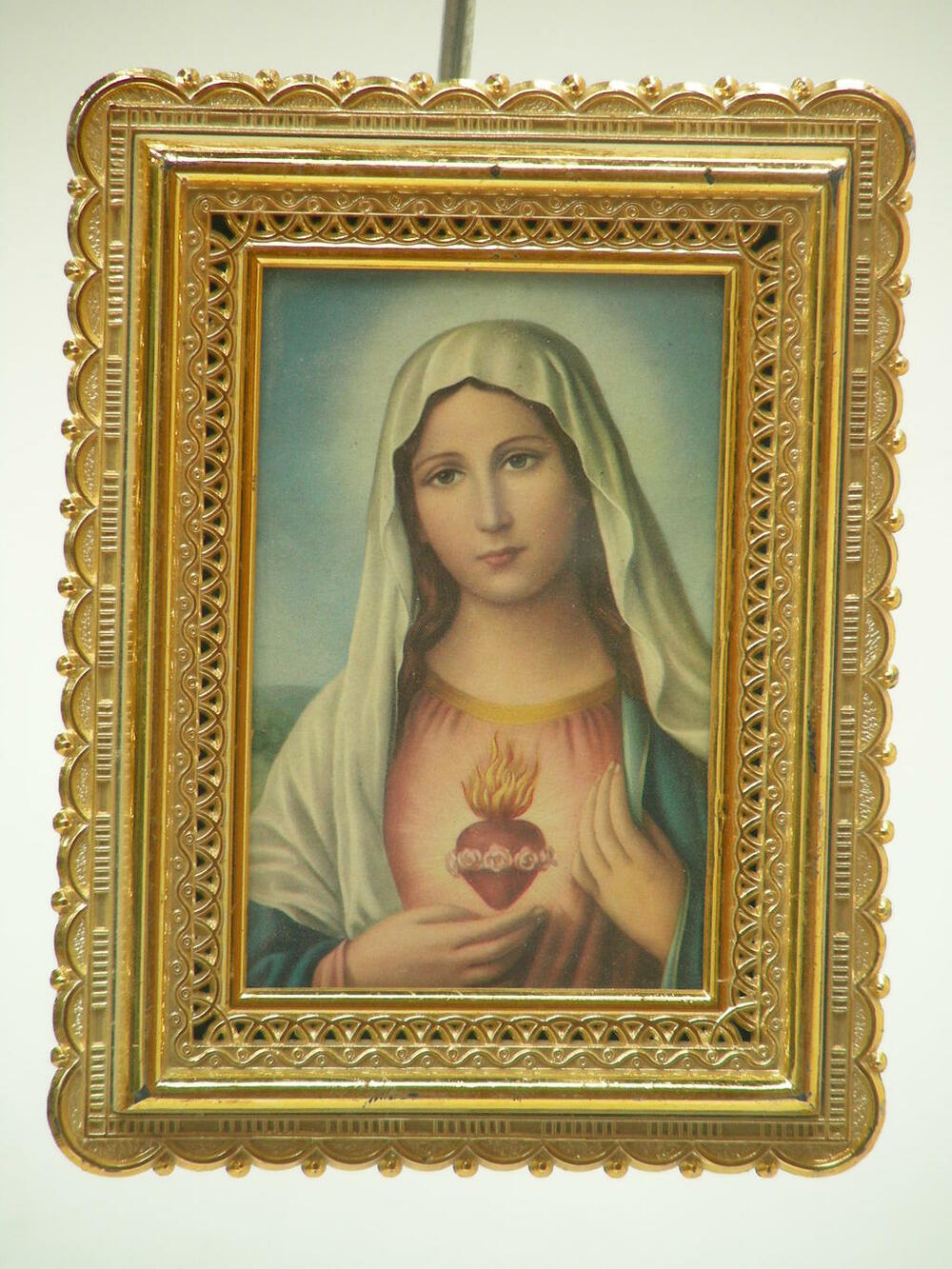 Bild, religiös, Maria mit brennendem Herz, Kunststoffrahmen, verziert,