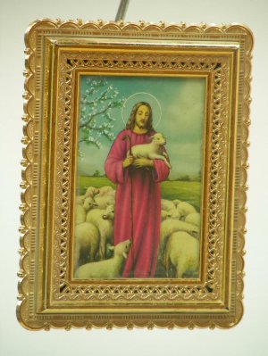 Bild, religiös, Hirte, Kunststoffrahmen, verziert,