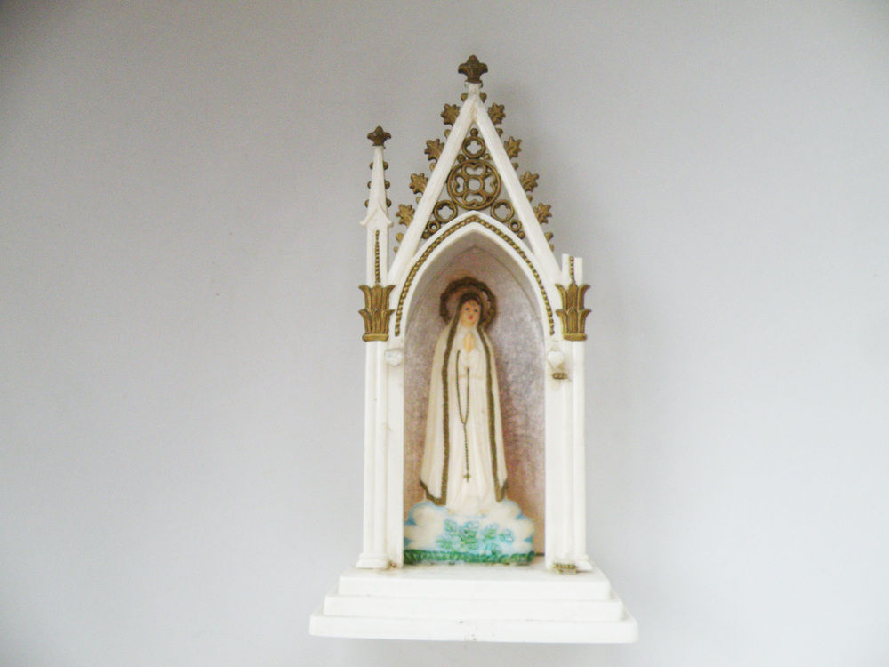 Madonna, in Altar, Statue, religiös, Kitsch, sakral, Kunststoff