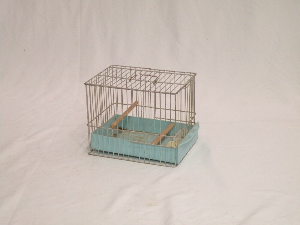Vogelkäfig, Transportkäfig, 70-er, mit Trinkschälchen, herausnehmbare Sandschublade, Türchen nach oben schiebbar