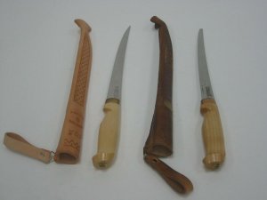 Messer, Fischermesser, Finnenmesser, Holzgriff, Lederscheide, "J.Marttiini