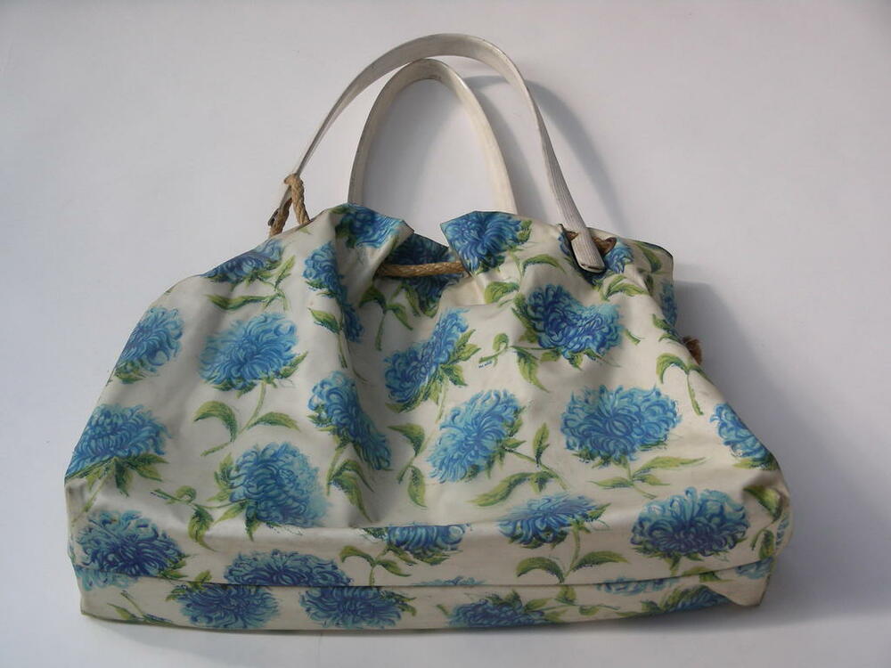 Umhängetasche, Einkaufstasche, 2 Griffe, Schnurverschluss, Blumendruck, Kunststoff