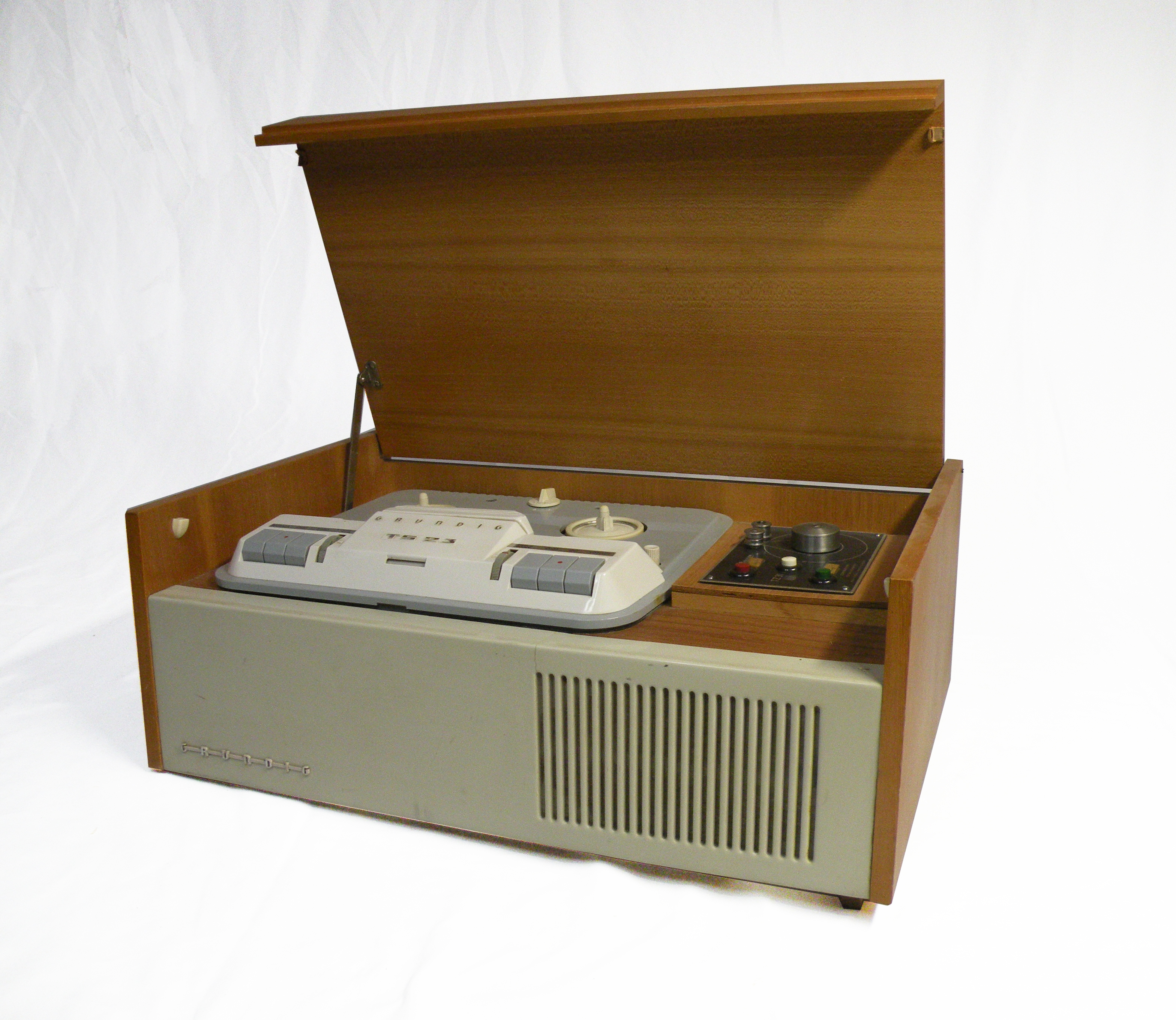 Tonbandgerät, "Grundig", aufklappbar, Holzdekor
