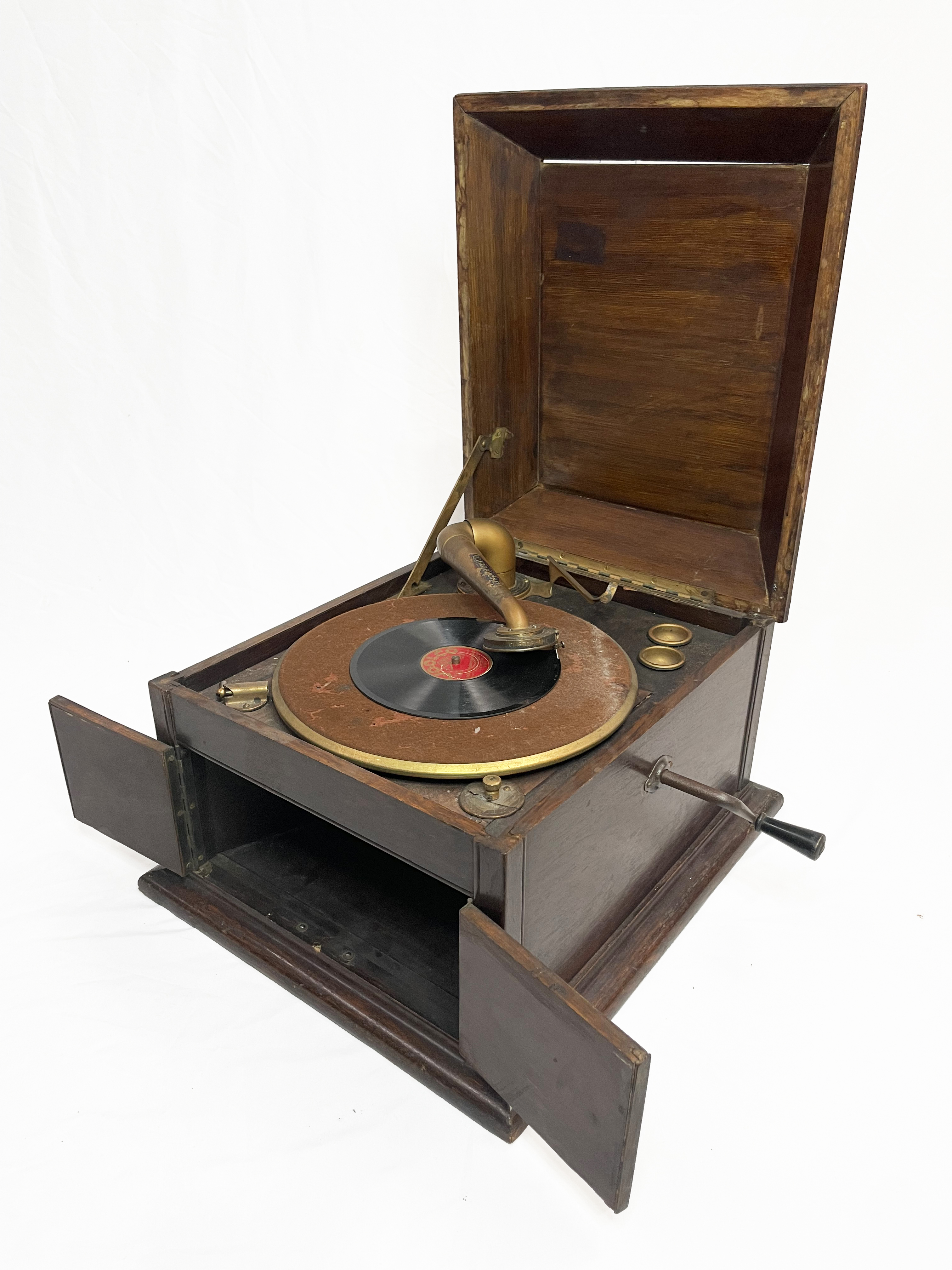 Beschreibung: Grammophon, "Liftophon", Schallplattenspieler, Plattenspieler,