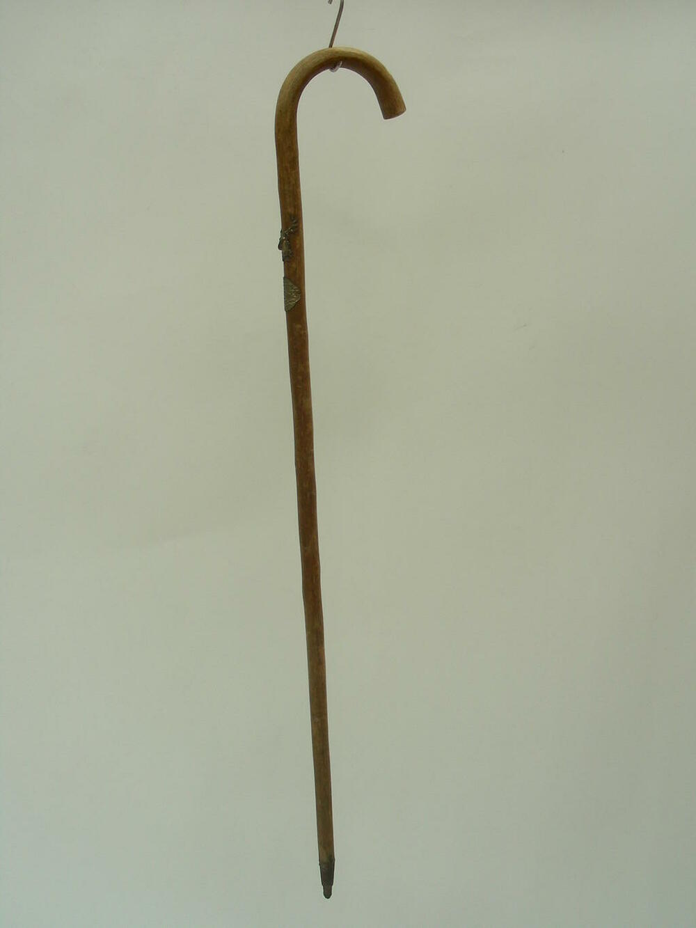 Spazierstock, Wanderstock, Stahlspitze, Astholz, Metallplakette "Hirsch, Chiemsee" und "Aschau"