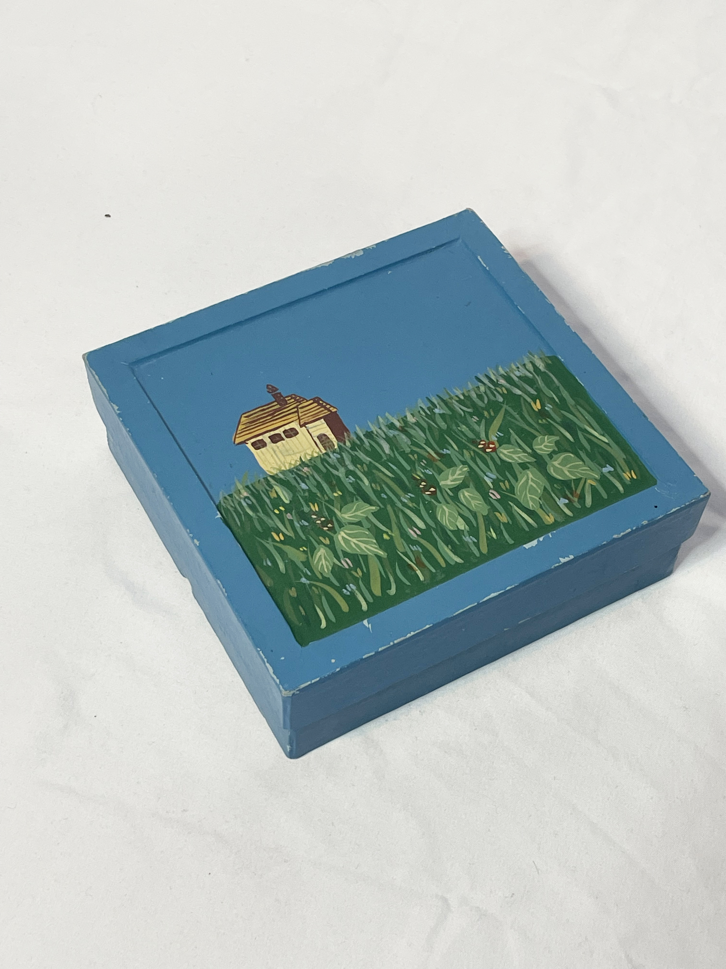 2-teilig, bemalt, Motiv "Landschaft mit Kirche", skandinavisch