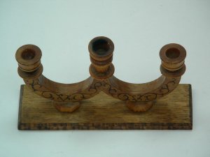 Kerzenleuchter, Tischkerzenleuchter, 3 - armig, Holz, verziert