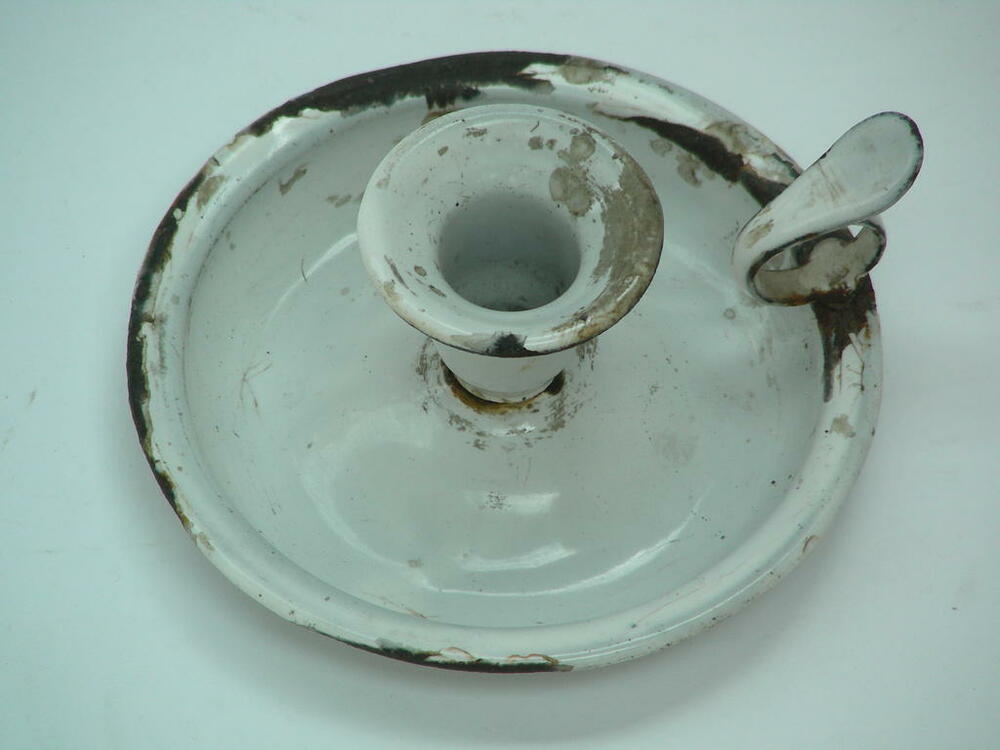 Kerzenleuchter, Tischkerzenleuchter, Tellerkerzenleuchter, rund, Griff, Emaille