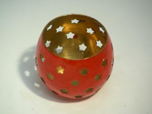 Windlicht, Kugel, sternförmige Löcher, Weihnachten, Messing, emailliert