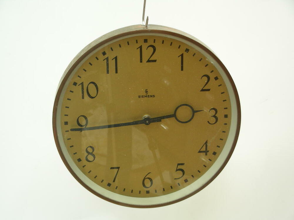 Uhr, Wanduhr, rund, Metall, "Siemens"
