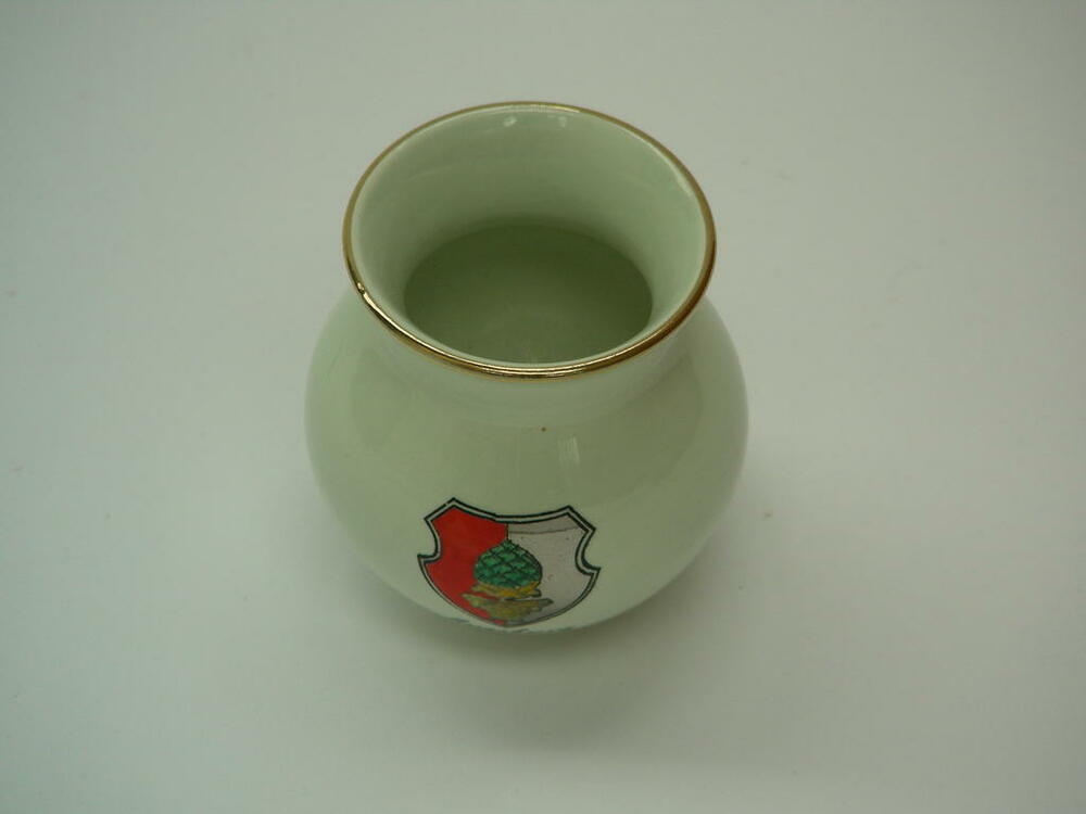 Vase, Souvenir, bauchig, Goldrand, Aufdruck: "Augsburg", Porzellan