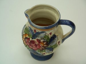 Vase, Krugform, Henkel, bäuerlich, Blumendekor, Keramik