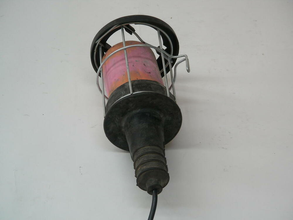 Arbeitsleuchte, Handleuchte, Gummi, Draht, Glasschirm, mit Haken