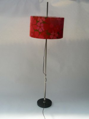 Bodenleuchte, Stehleuchte, Metallfuß, Stoffschirm, geblümt