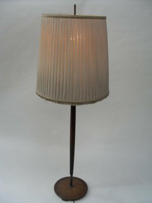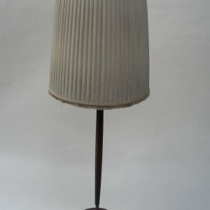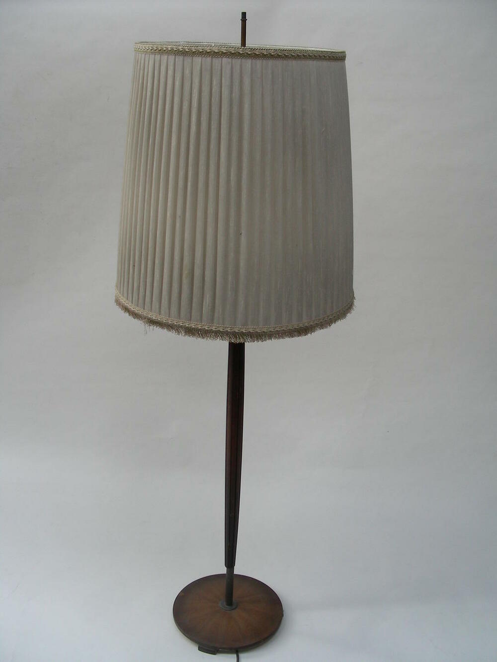 Bodenleuchte, Stehleuchte, Holzfuß, Stoffschirm, plissiert