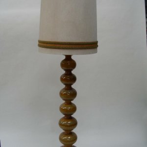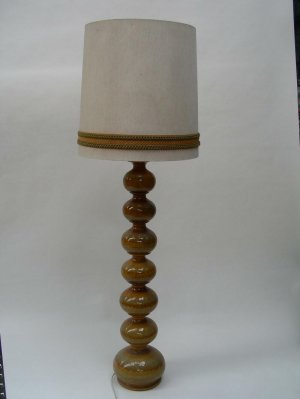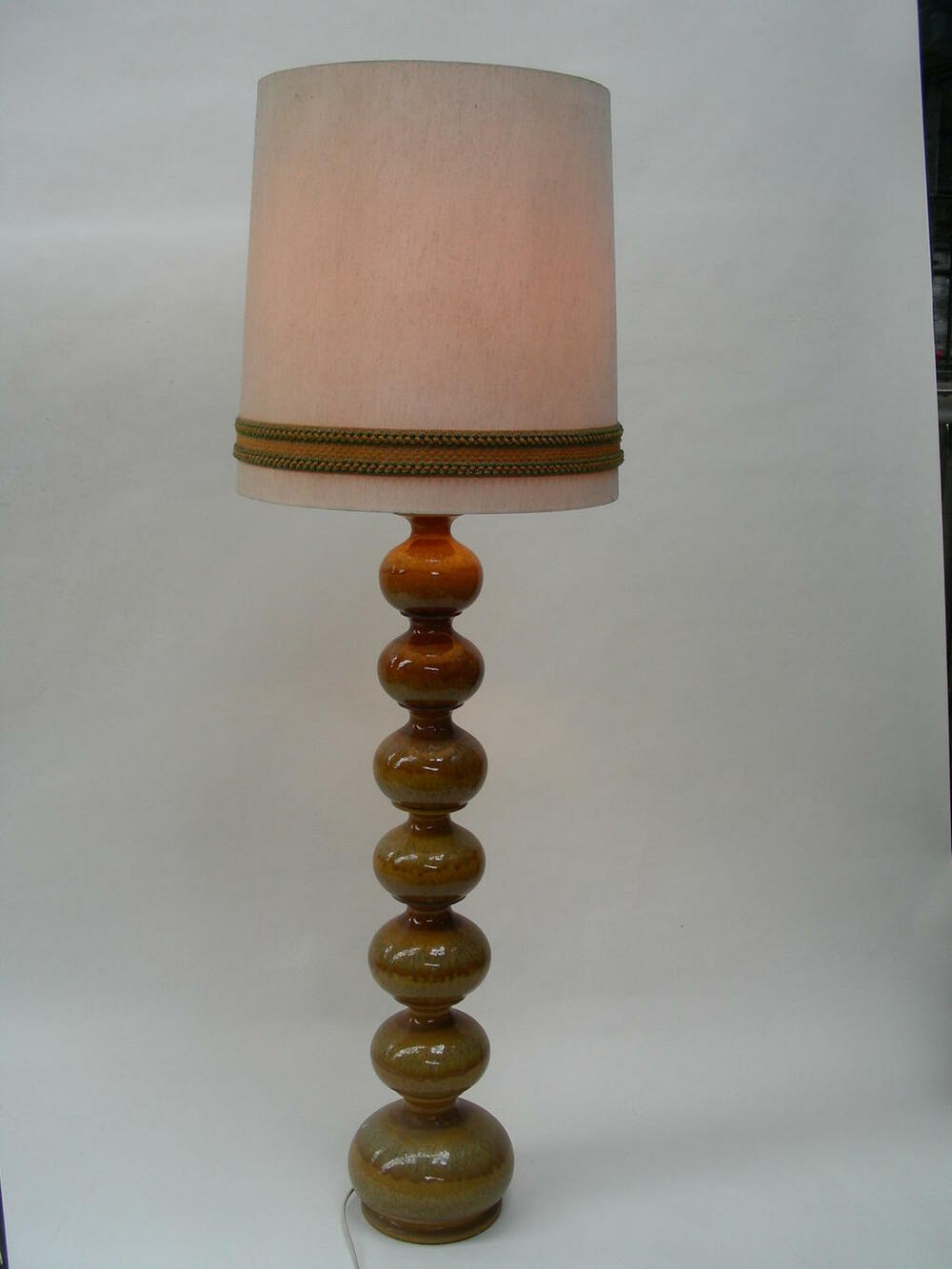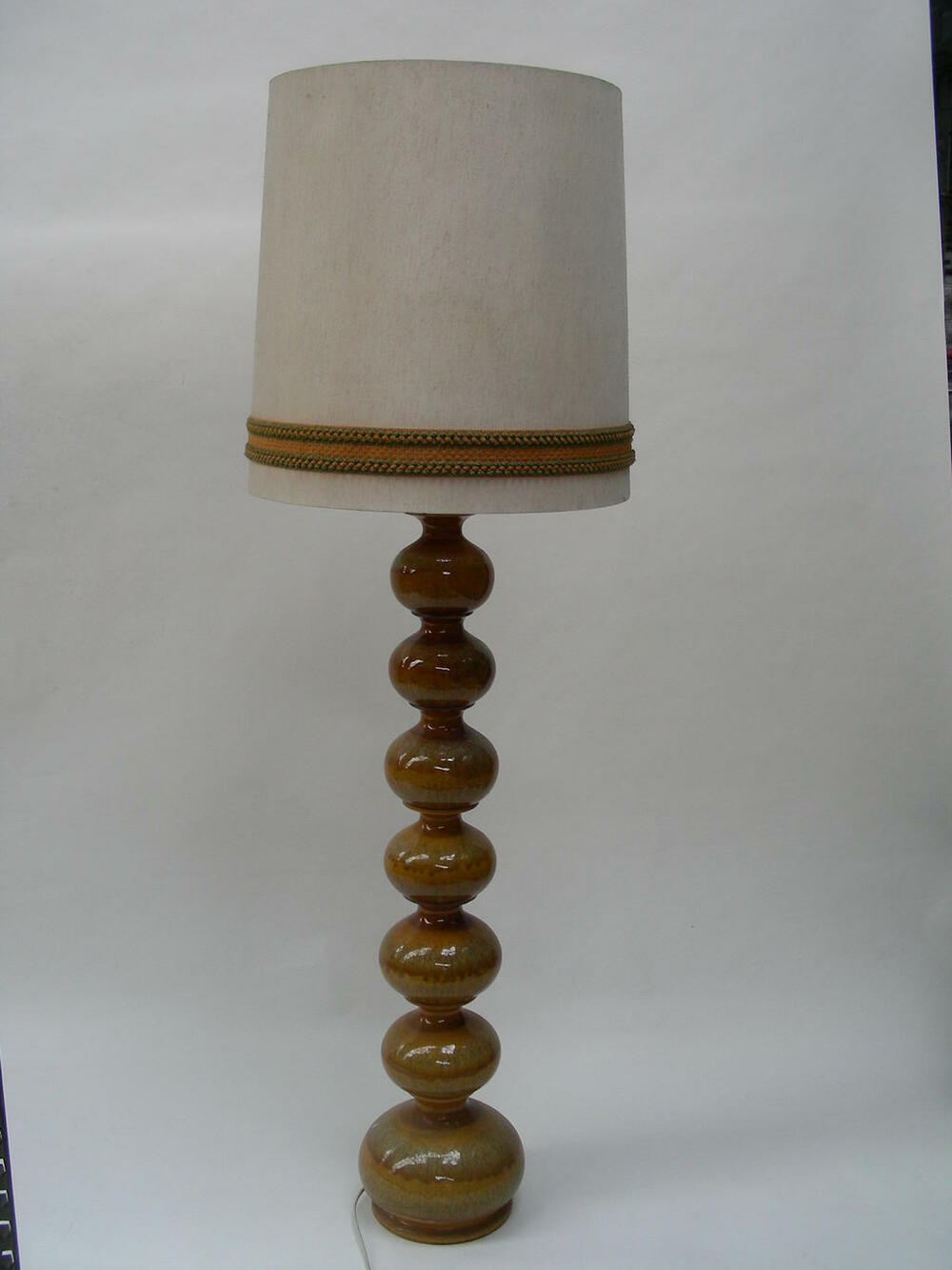 Bodenleuchte, Stehleuchte, 2 Fassungen, Keramikfuß, Stoffschirm, Borte, "Kaiser"