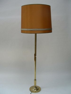 Bodenleuchte, Stehleuchte, 2 Fassungen, Metallfuß, Stoffschirm, Borte