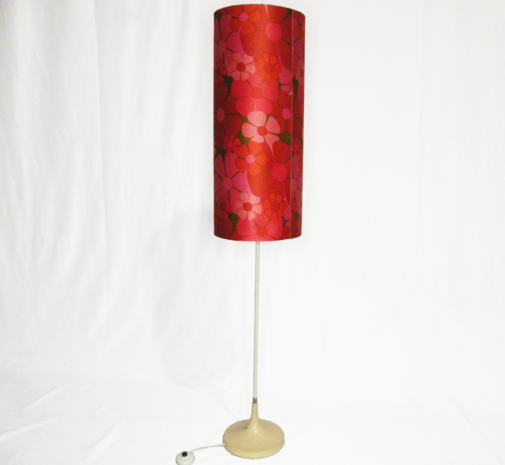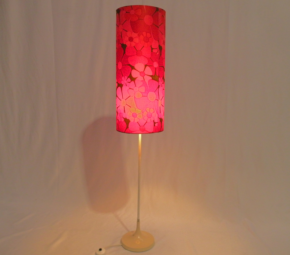 Bodenleuchte, Stehleuchte, Metallfuß, Stoffschirm, geblümt