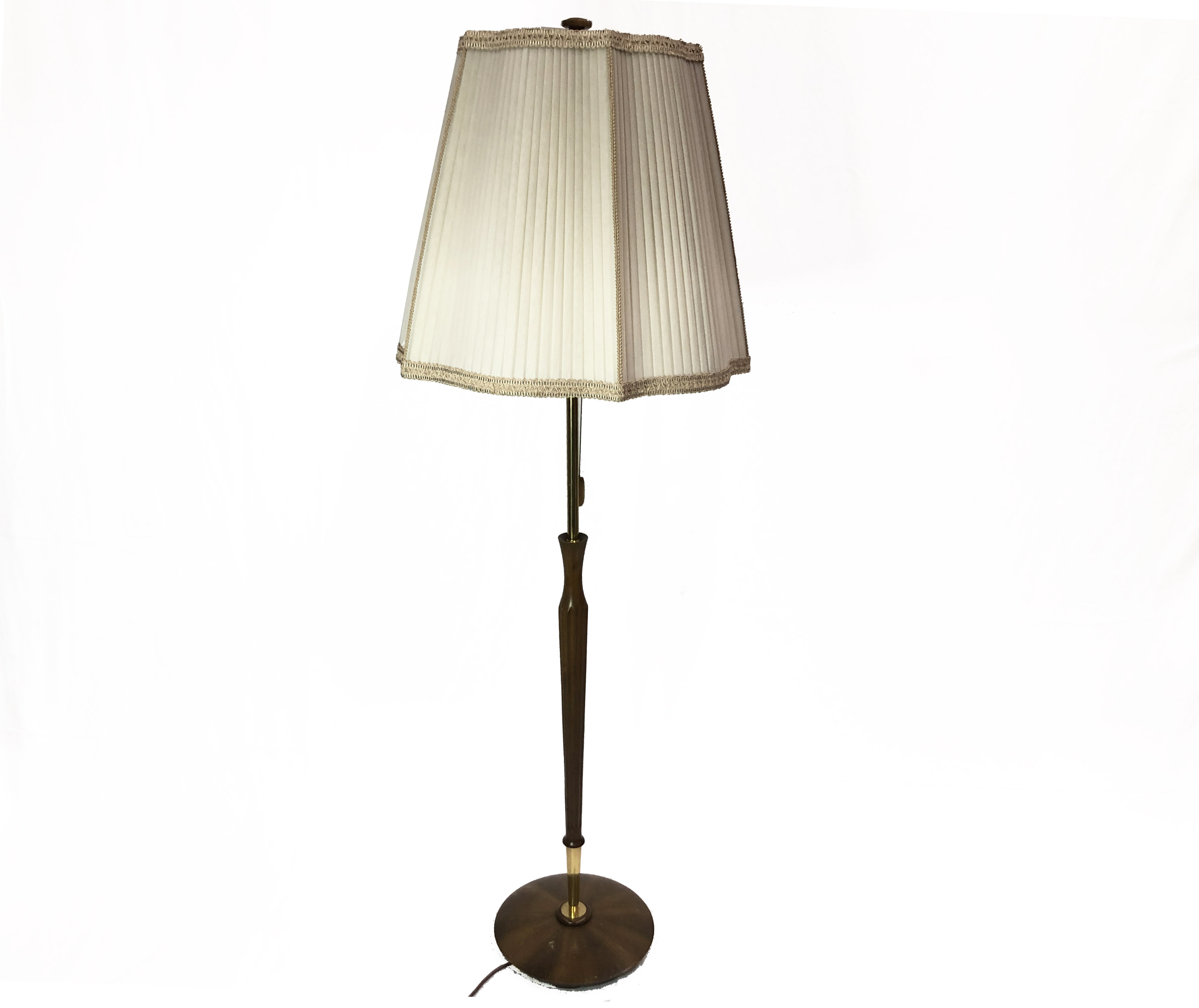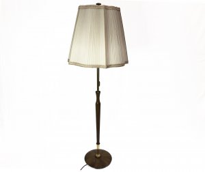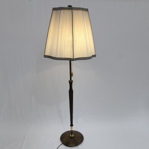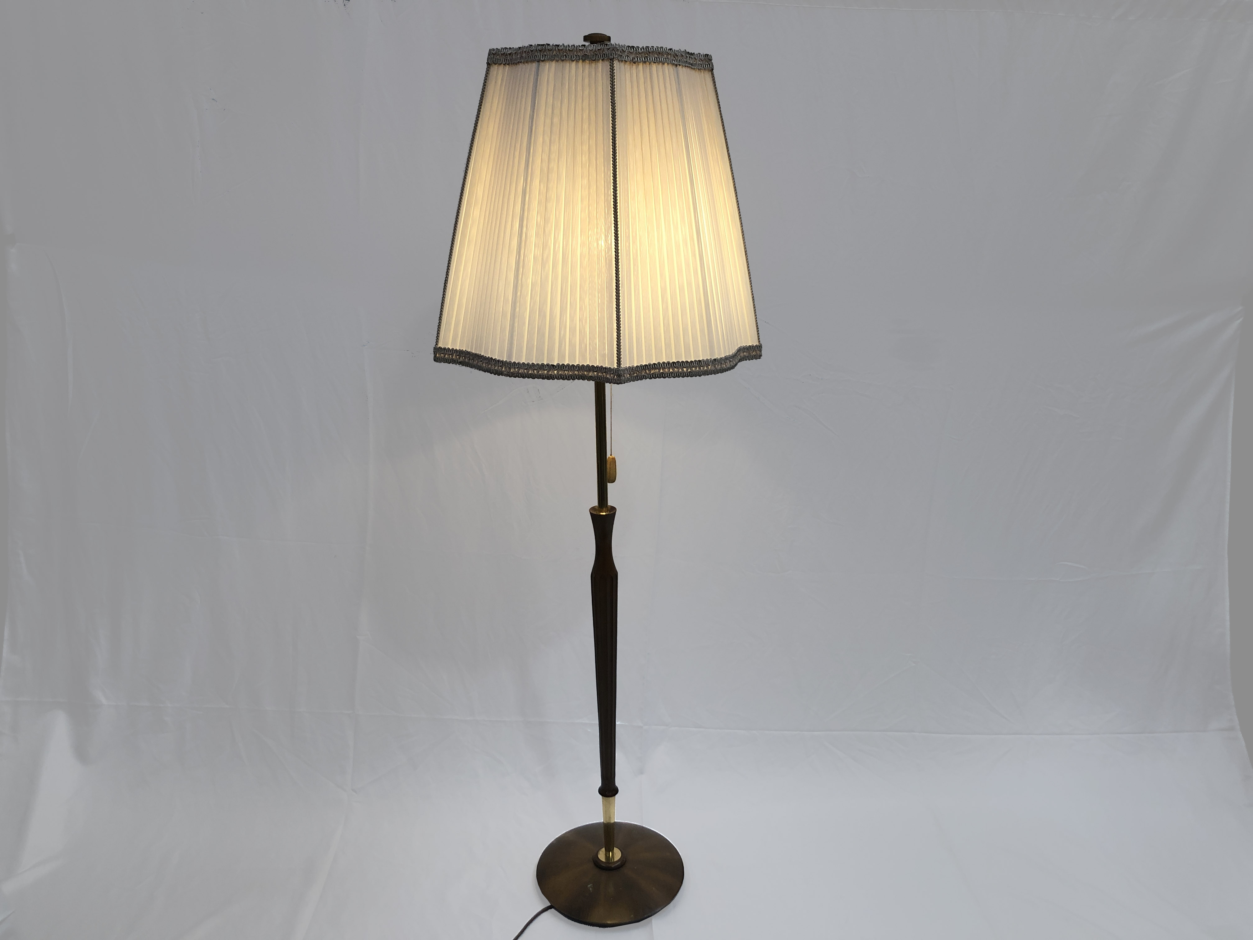 Bodenleuchte, Stehleuchte, Metallfuß, geschwungener Stoffschirm, 2-flammig, Zugschalter,