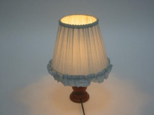 Leuchte, Tischleuchte, Nachttischleuchte, geraffter Stoffschirm mit Volant, Holzfuß
