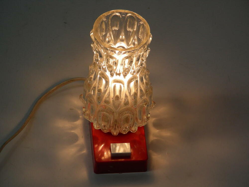 Tischleuchte, Nachttischleuchte, Kunststoffsockel, Glasschirm