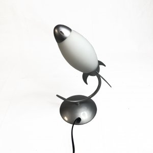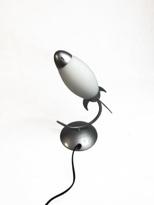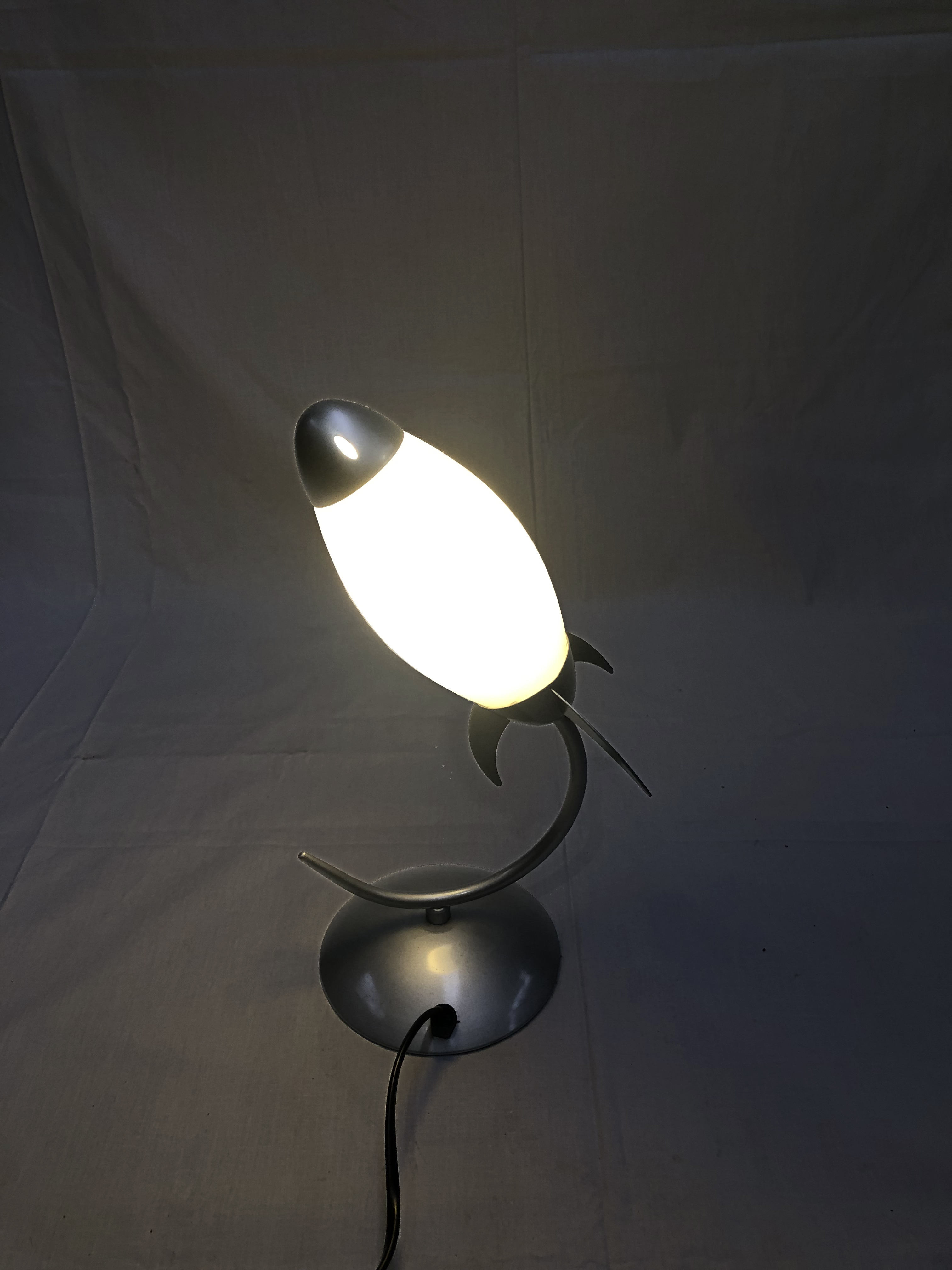 Tischleuchte, Motiv "Rakete", Glas/Metall