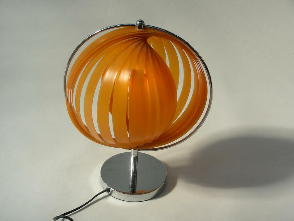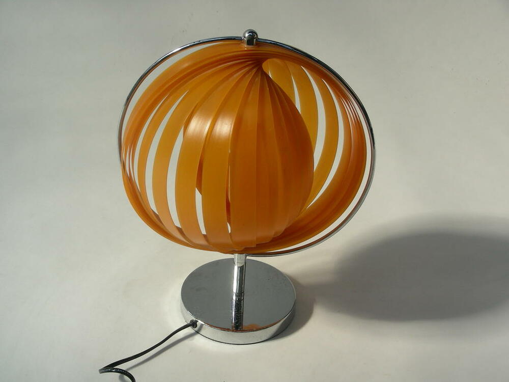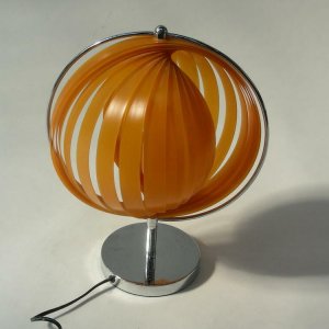 Tischleuchte, 70er - Retro, Chromfuß, Kunststoffschirm, gefächert, "Dom"