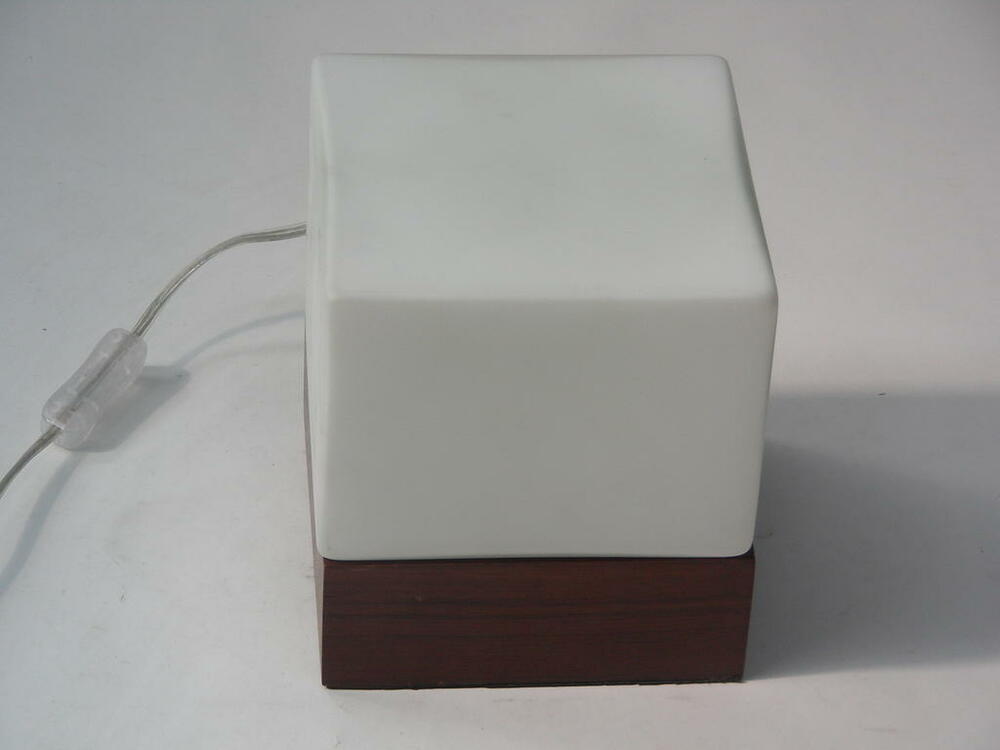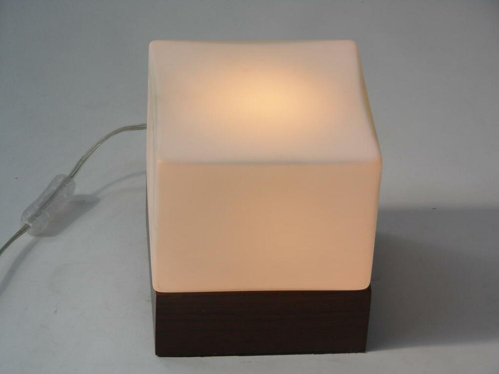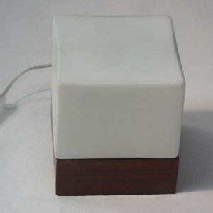 Tischleuchte, Nachttischleuchte, Quader, Holzsockel, Glasschirm, opal, satiniert, "Habitat"