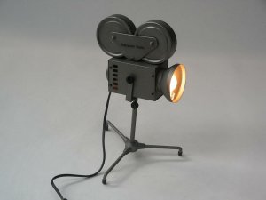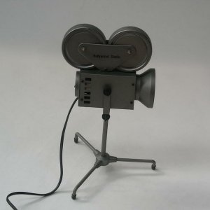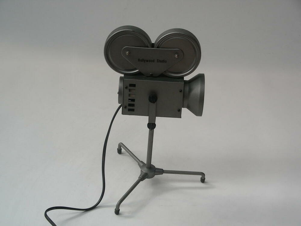 Tischleuchte, Nachttischleuchte, Schreibtischleuchte, "Filmkamera", Druck "Hollywood Studio", Kunststoff, Metallschirm, "Trio Leuchten"