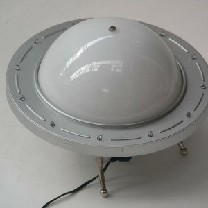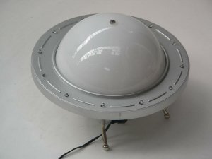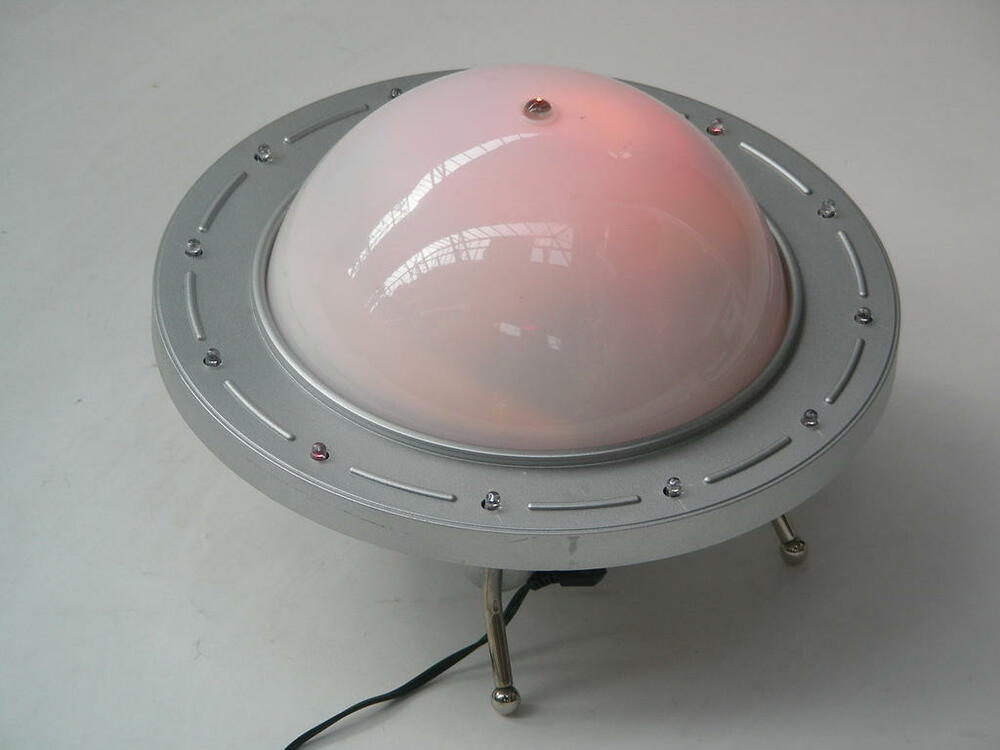 Tischleuchte, Nachttischleuchte, "Saturn", drehendes Licht im Schirm, Blinklicht in Umrandung, Metallfüße, Kunststoffschirm