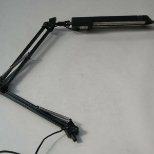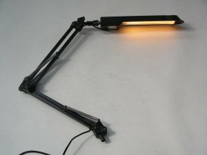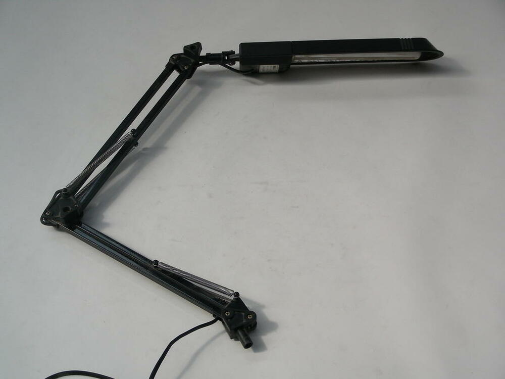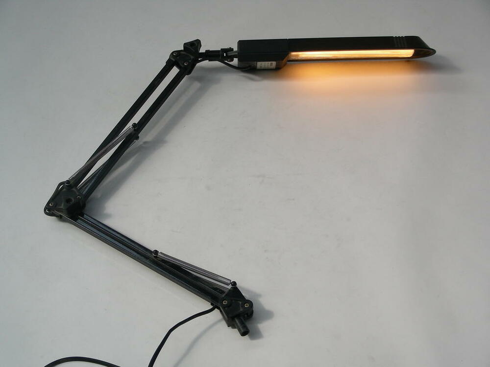Tischleuchte, Schreibtischleuchte, höhenverstellbar, drehbar, für Tischklemme, Leuchtstoffröhre, Metallarm, Kunststoffschirm, "Bahag"
