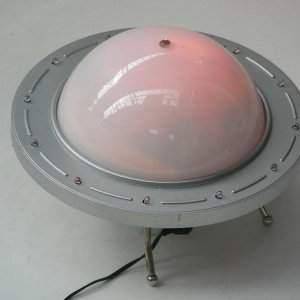 Tischleuchte, "Sompex-Collection", satinierter Schirm, Chromfuß, Space-Age